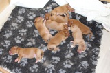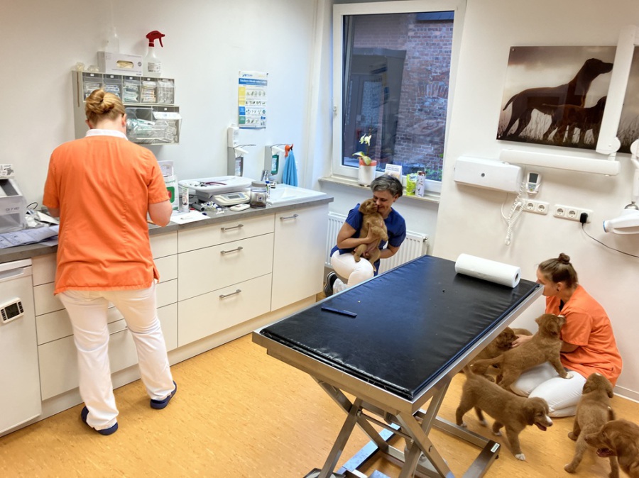 Am Ende wird es immer etwas stressig für die kleinen Roten. Erst gab es den Welpentest bei Marion Grote und heute gleich das Impfen und Chippen bei Fr. Dr. Thomasmeyer. Allen Welpen geht es gut. Es gab zwar eine kleine Behandlung, aber nichts kritisches. Wenn jetzt noch die Welpenabnahme gut überstanden wird, dürfen die Welpen aus dem Haus. Ich bin und bleibe gespannt.