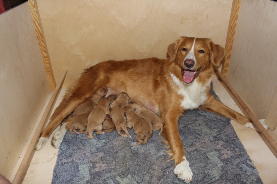 Geburtstage fallen manchmal eng nebeneinander. Aber eins nach dem anderen. Nina Gassner hat Aruna bis zur Zuchttauglichkeit in Österreich gebracht. Einige Dinge dazu hatte ich ja schon geschrieben. Der Deckakt hat ausgezeichnet funktioniert und da es der erste Wurf aus dem Kennel Legend of Heyoka war hatte ich meine Unterstützung angeboten, falls Interesse bestehen würde. Dieses Angebot wurde dankend angenommen, also habe ich mich natürlich unverzüglich auf den Weg gemacht, nachdem die Temperatur der kleinen Aruna unter die Marke 37° gesunken war. Keine 7h später stand ich also vor der Tür. Etwa gegen 19 Uhr. Nach einem kurzen Kennenlernen ging es dann auch schon um 22.30 Uhr los mit der Wurf. Während der erste Bubi musste sich noch seinen Platz schaffen mussten, kamen die Geschwister dann nach den Vorstellungen von der kleinen Aruna. Kaum 6h später konnten alle 9 Welpen gesund und munter das Licht der Welt erblicken. Kurz nach der Geburt waren alle Welpen agil unterwegs, so wie es sich gehört. Bei so einer traumhaften Geschichte bleibt doch ein Züchter gern mal 24h am Stück wach. Das ganze Geschehen wurde unterstützt über eine Videokonferenz mit Caroliin Wehrheim. Alle Welpen haben ein tolle Zeichnung und einige wollten auch ein wenig mehr. Gut auf dem Bild zu sehen. Genau weiß ich es natürlich nicht, aber vielleicht gibt es ja noch Interesse an einem kleinen Renner zu Beginn des Jahres 26. Hier könntet ihr über Legend of Heyoka ja gern mal nachfragen, ob da noch ein Welpe zu haben ist. Ich für meinen Teil wünsche dem A-Wurf von Legend of Heyoka alles Liebe und Gute.
