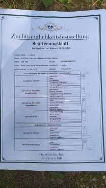Hat doch Arunchen die Zuchttauglichkeitsprüfung mit Bravour bestanden. Das sage ich nicht nur so, denn die Richterin hat im Kommentarfeld genau das notiert. "Bravo". Auch die aufgeführten Kategorien hätte sie wohl kaum besser bestehen können.