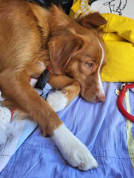 16.10.23 | Eine richtige kleine Kampfmaschine. Sie weiß was sie möchte und das alles sofort. Ist aber sehr lieb geworden, mit ihren Geschwistern. Neue Situationenn scheinen Aruna nicht zu stressen, was schön zu sehen ist. Ist zügig unterwegs. Bin gespannt, was da noch so alles in der kleinen Roten drin steckt. |