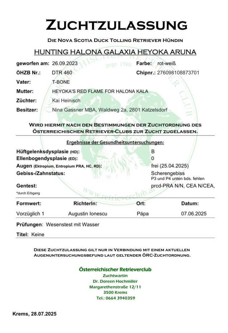 28.07.2025 Zuchtzulassung von Aruna